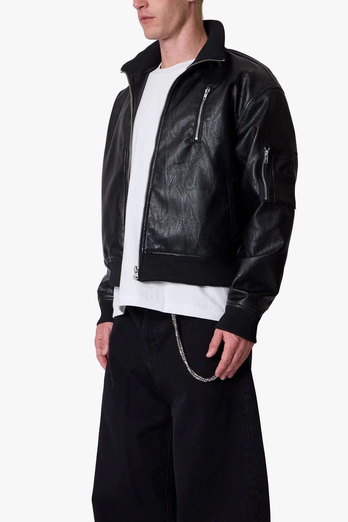 Constructed from a durable faux leather blend, the Leather Pilot Jacket features a standard fit with a classic pilot silhouette. Designed with a high ribbed neck and multiple zip and welt pockets, it includes a front zip closure and ribbed cuffs for a secure fit.